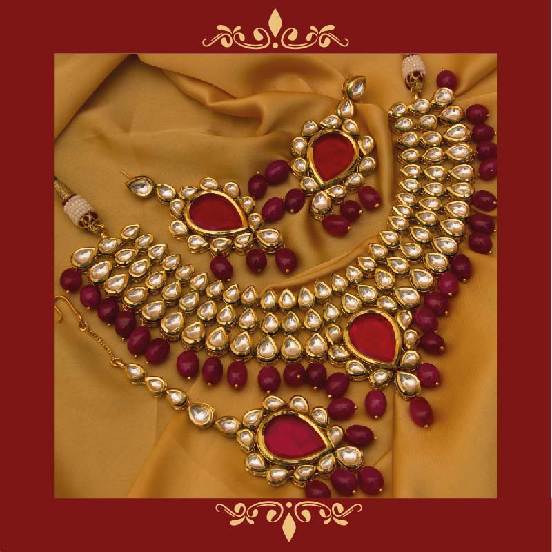 One thing that we learned from recent celebrity weddings is, one must not forget to pick the right jewelry, complete and coordinating pieces. From of all the popular weddings this season, we have picked enough inspiration to grab the right pieces to go with the right type of dress. Talking about the right type of jewelry, it is always a hassle to find everything that you need in one place. Not very long ago, you could not find a good ‘teeka’, or many options for ‘jhumkis’ to choose from that easily, so even if you plan on wearing artificial jewelry, you would either end up borrowing the jewelry from a friend (that is if you are lucky!) or you would have to dig up the stash and take out valuable heirloom pieces that you rather not wear like that if you had the choice.