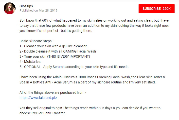 Glossips shopped and shared her favorite skincare products from lalaland.pk